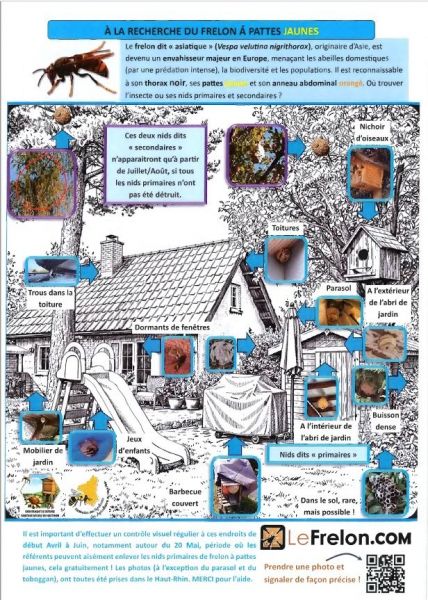 Si vous trouvez un nid primaire ou surtout un nid secondaire n'y touchez pas : prenez une photo et envoyez-là sur www.lefrelon.com ou à notre référent local : referentfa68@gmail.com.